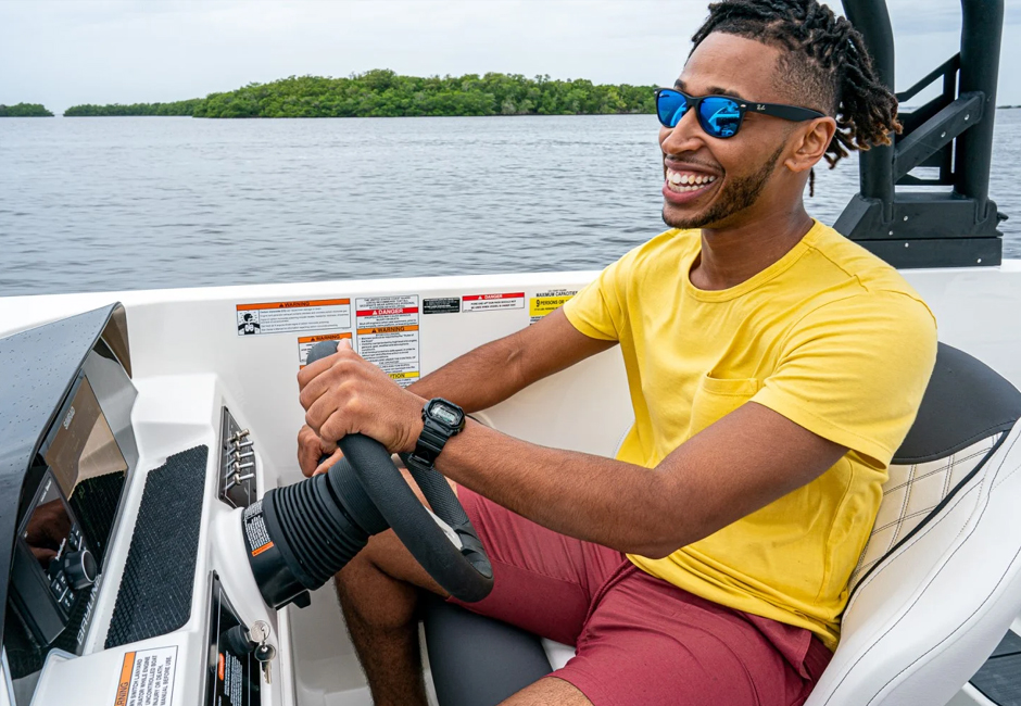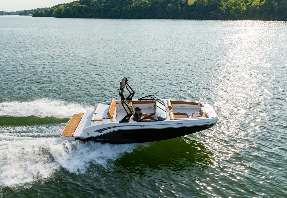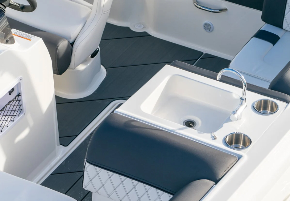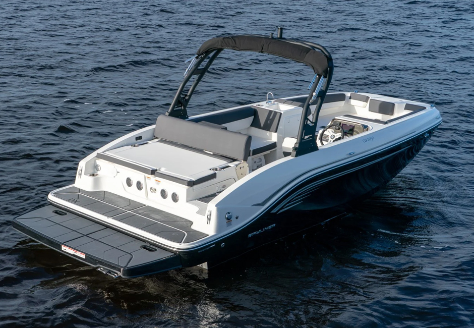 This versatile sterndrive model offers three interior floorplan options to suit your family needs. Choose from a side console layout with maximum seating side console with an entertainment center and sink or a dual console cockpit with full windshield. All three interiors feature rich upholstery, lots of storage and a transitional aft lounger for total comfort. The exterior is equally appealing thanks to sleek hull sculpting and stylish shear lines.