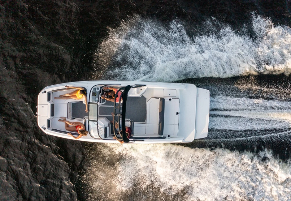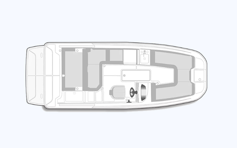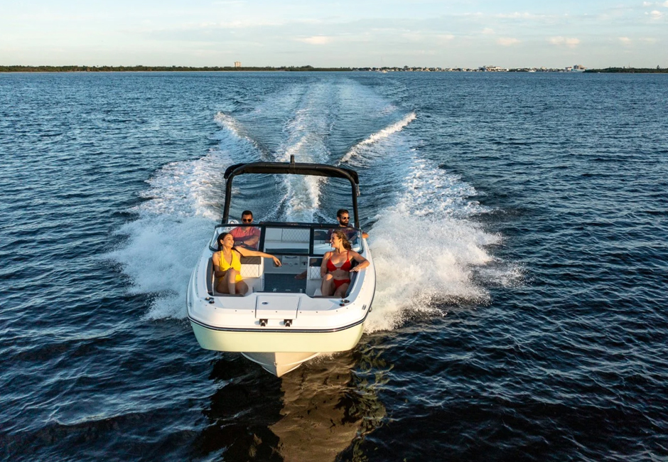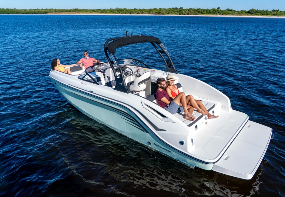 This family-friendly sterndrive model combines all the most popular aspects of the DX Series. The sleek exterior is complete with hull sculpting and stylish shear lines while the interior is loaded with all the comforts of home. The plush upholstery features quilting with black welt plus transitional cockpit and transom seating offer total lounging comfort while facing forward or aft. When underway the wider V-hull offers stability and a high freeboard keeps everyone safe and dry.