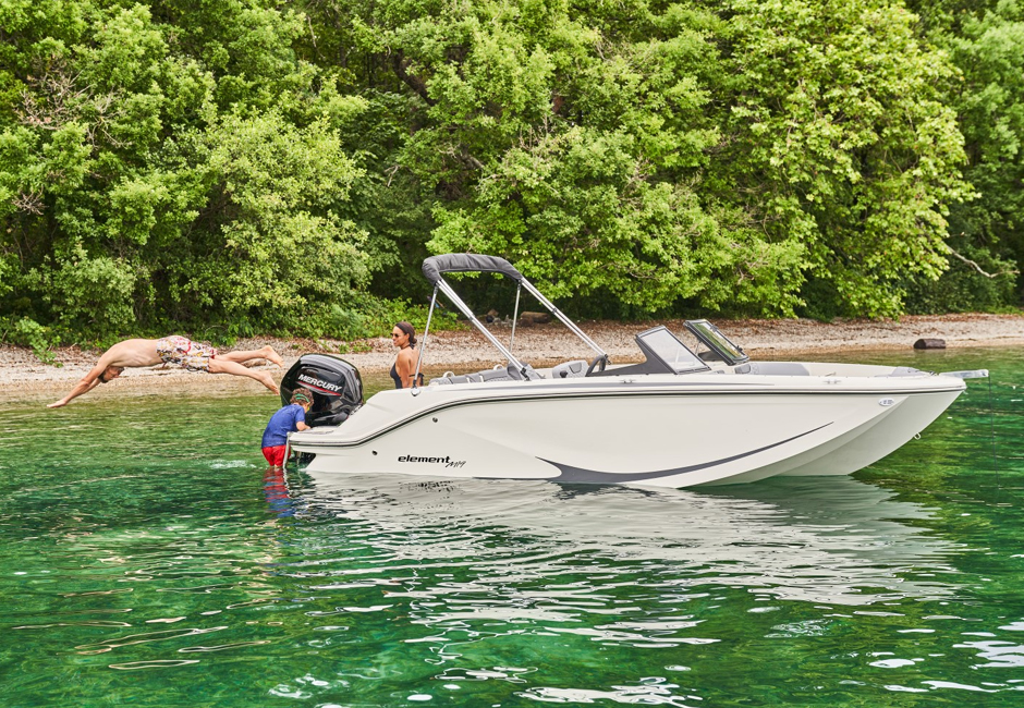 The M19 marks another evolution of our Element Series line of versatile deck boats. This compact lightweight and low-maintenance model makes boating easy for couples and small families. Both first-time and experienced owners can appreciate its simplicity and style.