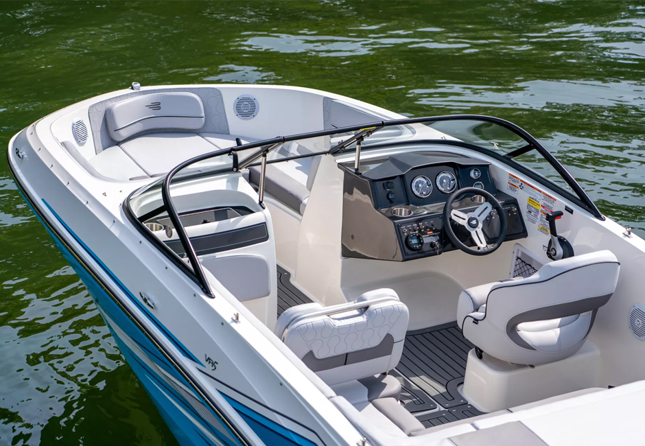 The VR Series is Bayliner’s take on the traditional bowrider with a V-hull. Our BeamForward™ design carries the full width of the boat through the bow, and our AftAdvantage™ design creates more usable space.