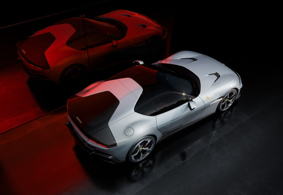 Clean lines dominate the 12Cilindri’s geometry, underscoring the volumes that make up a seamlessly interconnected whole. The ultra-clean flanks sweep back along the entire car from a dihedral section. The 12Cilindri’s wings have been sculpted with extreme geometric precision: all of the lines are the result of intersections between the volumes and a more functional approach to form has been taken that eschews nostalgia.