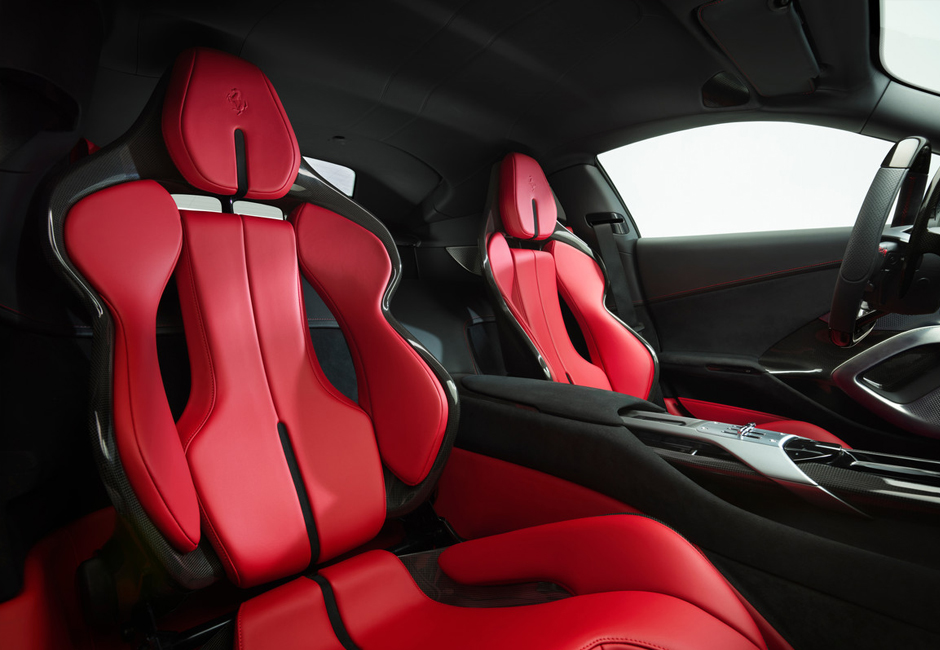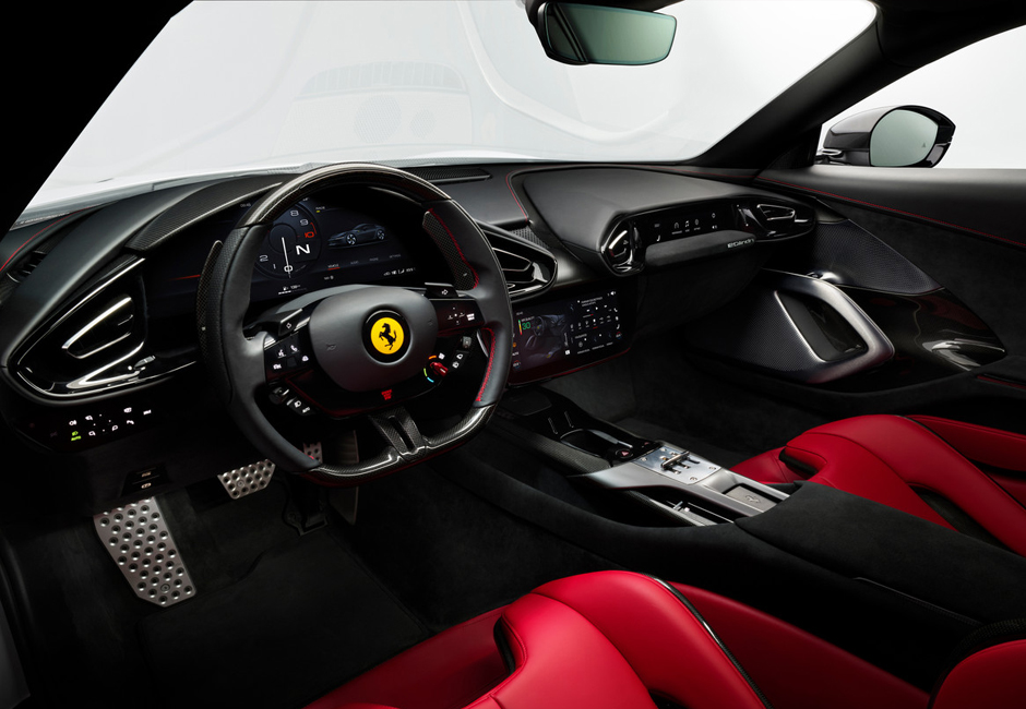 The Ferrari 12Cilindri is equipped with Maranello’s iconic naturally-aspirated V12 engine, the purest expression of Ferrari’s spirit. This version delivers 830 hp of power, while the top engine speed is 9500 rpm. Some of the developments implemented on this model have already been adopted on the 812 Competizione special series, such as the exhaust system with ceramic catalytic converter, titanium con rods, and pistons made from a lightweight aluminium alloy.