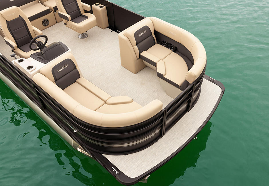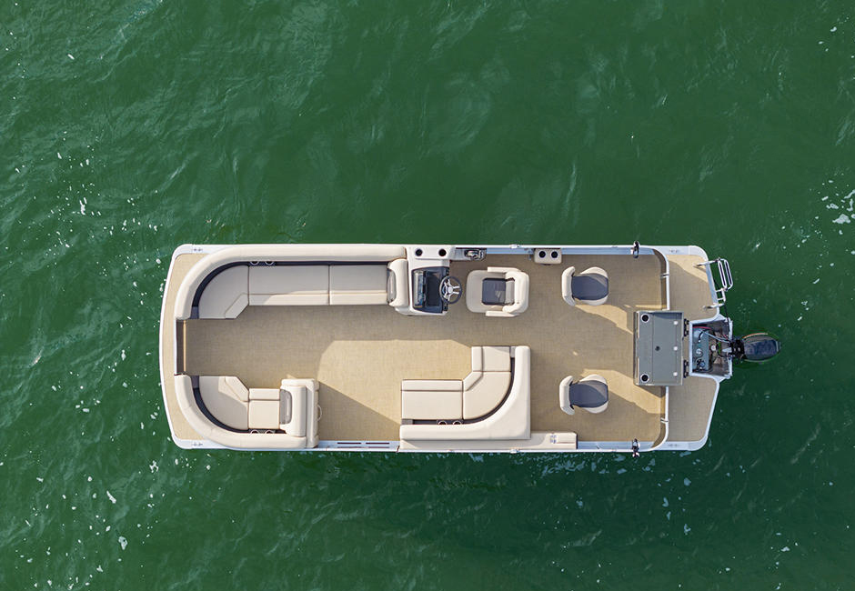 Take to the water on a craft built with value in mind that also includes more than you might expect, including a new 190 (19-foot) length, ultra-soft yet extremely durably vinyl upholstery, a reclining helm chair, and standard charging station. Personalizing your pontoon for watersports or fishing is simple- and optional performance packages give you better control on rough water.