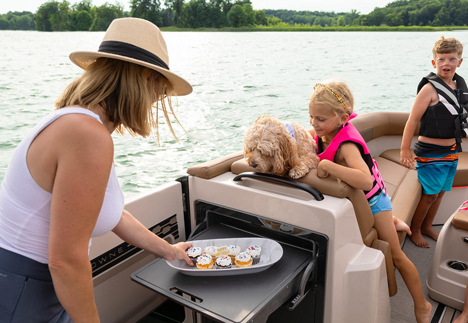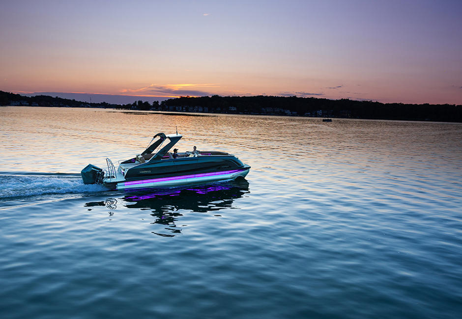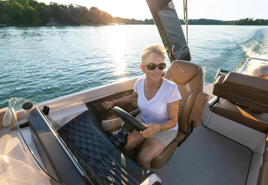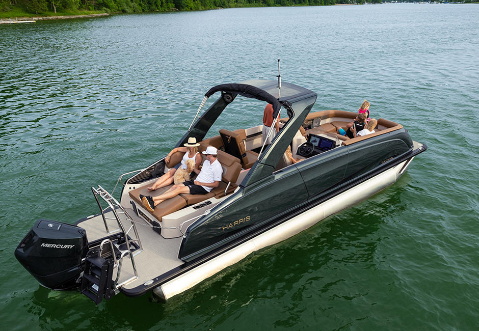 User-friendly boating technology is standard on the Crowne. You'll enjoy dual Simrad NSX12 screens and live-data connectivity through the My Harris mobile app, and you'll discover that onboard technology has never been more intuitive.