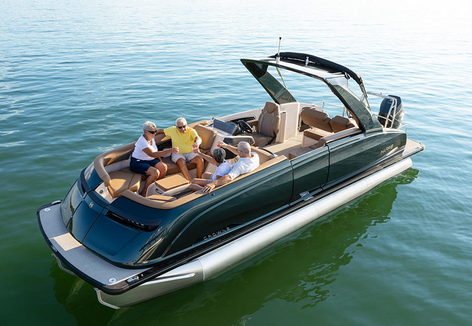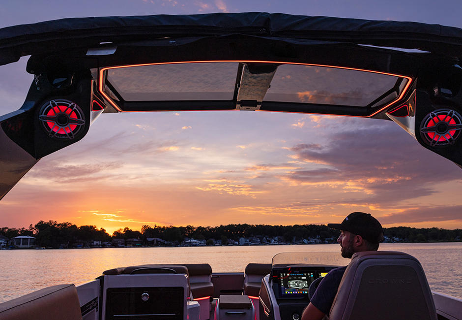 The Crowne demands attention on the water. Stunning fiberglass fencing wraps the playpen with peerless style, and the thoughtful interior design combines crisp details and understated elegance for a boat like nothing you've ever experienced.