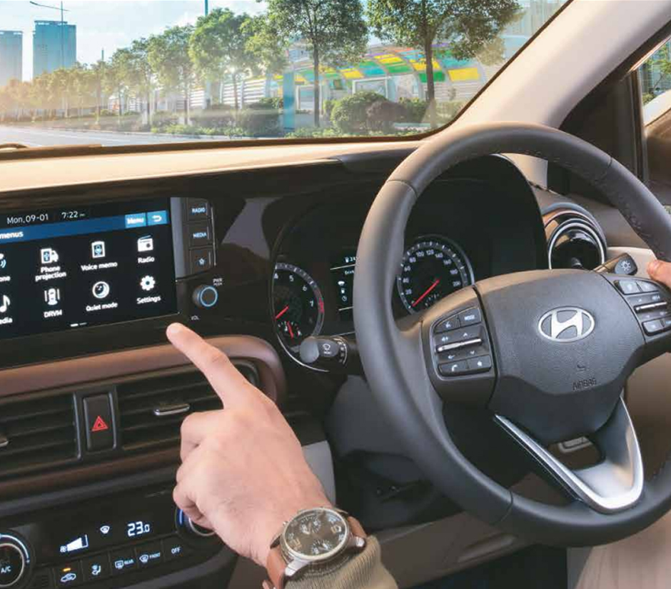 Class leading Hyundai AURA Car Convenience. With primary focus on family comfort, Hyundai AURA makes your journey pleasant with convenience features that delight the whole family. 20.25 cm (8") Touchscreen Infotainment System with smartphone connectivity in Hyundai AURA offers a digital experience.
