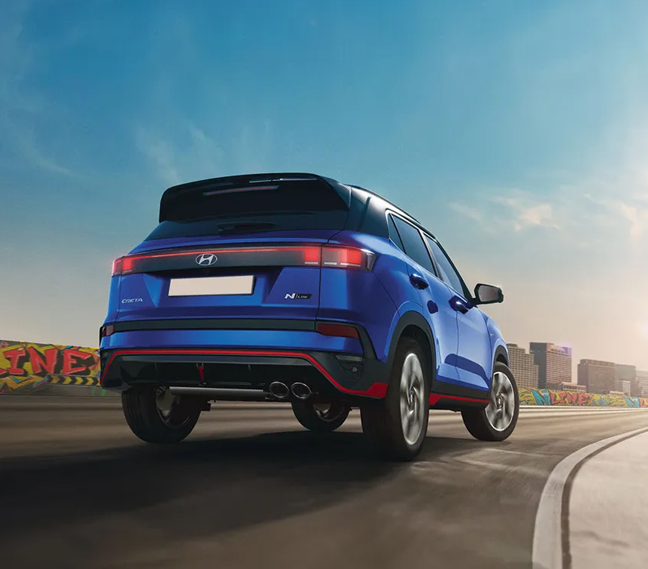 The Hyundai N Line portfolio enhances the driving enjoyment, ensuring a thrilling experience each time you drive. Complementing the front design, the Hyundai CRETA N Line offers a new rear design with sporty skid plate with red inserts, sporty twin tip exhaust. Embracing Hyundai's unique and distinctive N Line design language, the CRETA N Line features the unique N Line emblem on the front, side and rear profile, adding more character to the car.