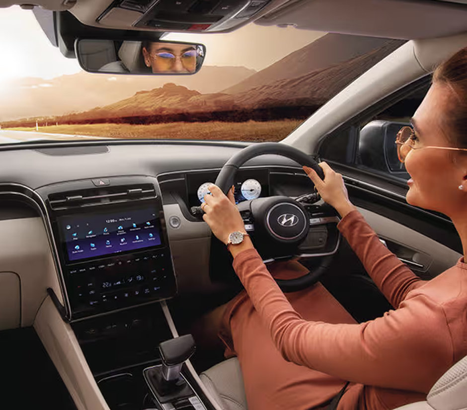 Hyundai TUCSON Interior: Exquisite in Every Way. Step into the all-new Hyundai TUCSON and experience sheer luxury. The driver side houses a 26.03 cm (10.25”) floating type digital cluster which builds on the SUVs advanced and modern design characteristics. Hit the right spot in your driving position with 10-way power adjustable ventilated & heated driver seat with memory function. The epitome of comfort, the embodiment of elegance.