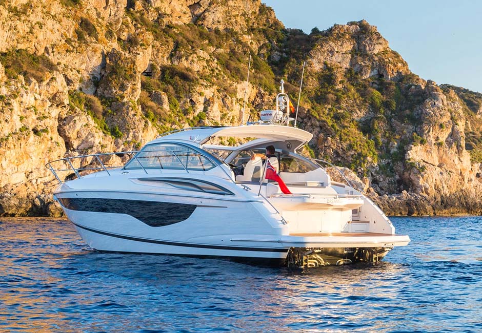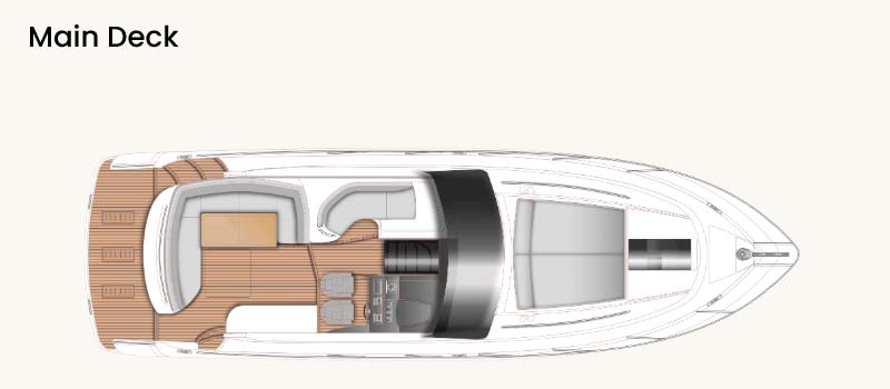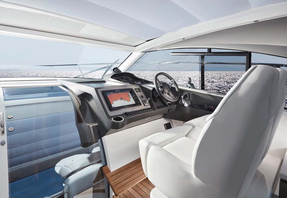 On the main deck, the spacious cockpit with well-equipped wet bar provides the perfect setting to create unforgettable experiences, with the option to specify a convertible sunbed aft.