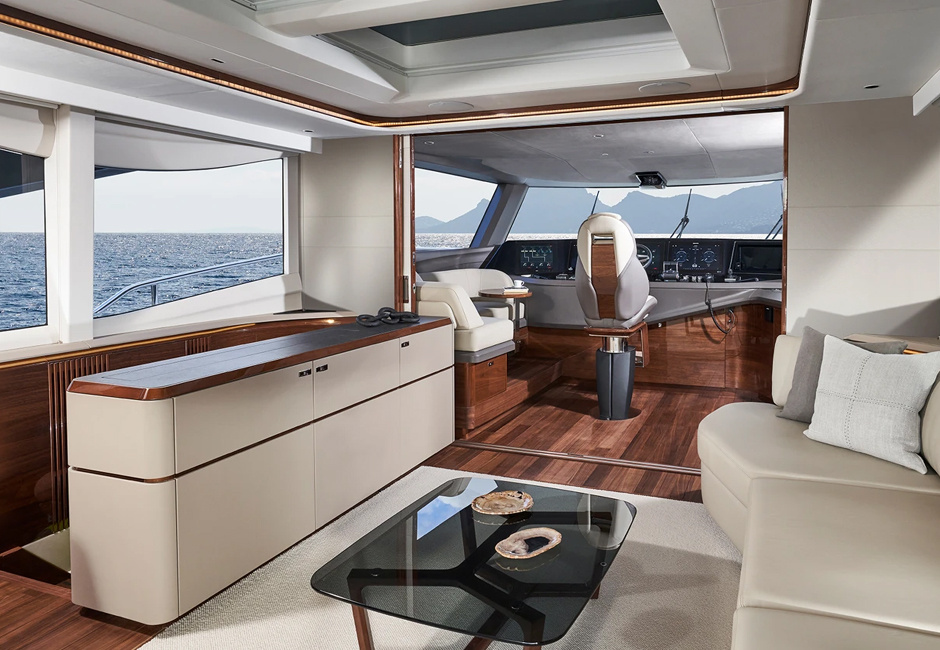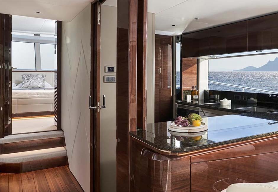 The X80 brings the outside in with glazing that flows the entire length of the main deck, encasing the saloon, galley and forward dining area.
