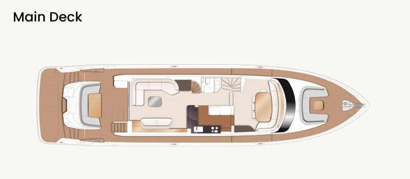 There’s also the option to include a main deck master stateroom with a private owner’s sundeck. And with the option of a long-range 7,000 litre tank, you can continue the adventure further afield.