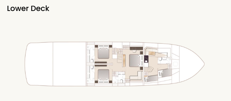 The aft dining area is surrounded by curved patio doors which offer panoramic views from inside the yacht. Four spacious double guest cabins complement the other luxurious features of the X90 including a full beam main deck master.