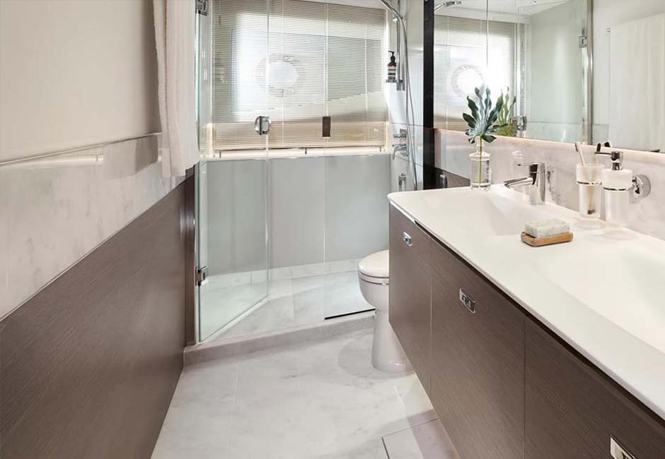 Enjoy design features you’d expect to find on larger Y Class yachts – thoughtfully designed and meticulously crafted. The full-length hull glazing fills the guest cabins with light.