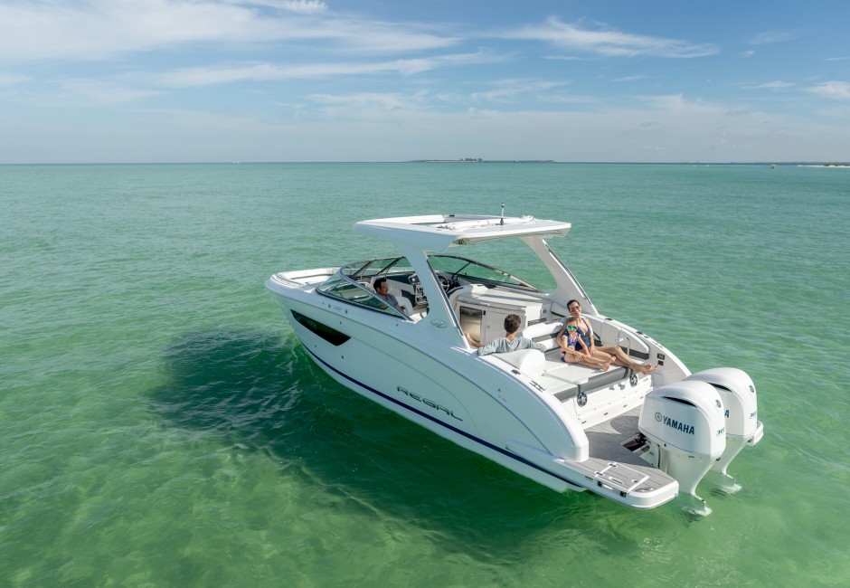 The waters are waiting to be traversed. And fortunately, you can explore near and far without limits in a Regal 33 OBX. Host a party, serve drinks and dinner in the expansive refreshment center or relax in the well-appointed, stylish and comfortable berth, accompanied by a well-equipped head. Equipped for both adventure and entertainment, there is virtually nothing this luxury outboard can’t handle.