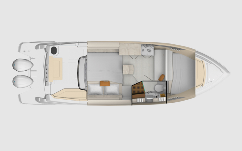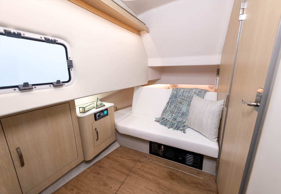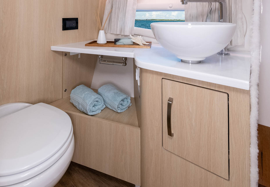 Enjoy the convenience of a walk-in shower, the modern elegance of an electric head, and the refreshing ambiance of a window bringing in abundant natural light. Experience true indulgence in the 33 SAV's spacious and well-appointed head.