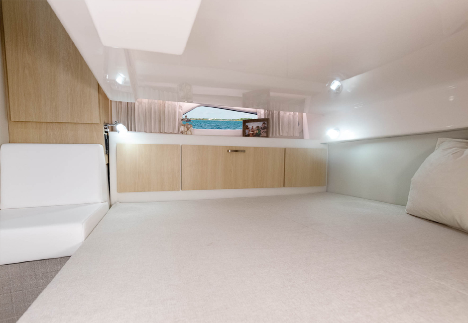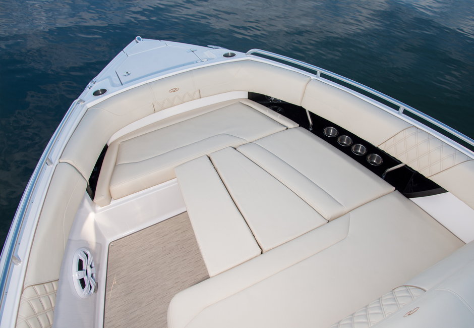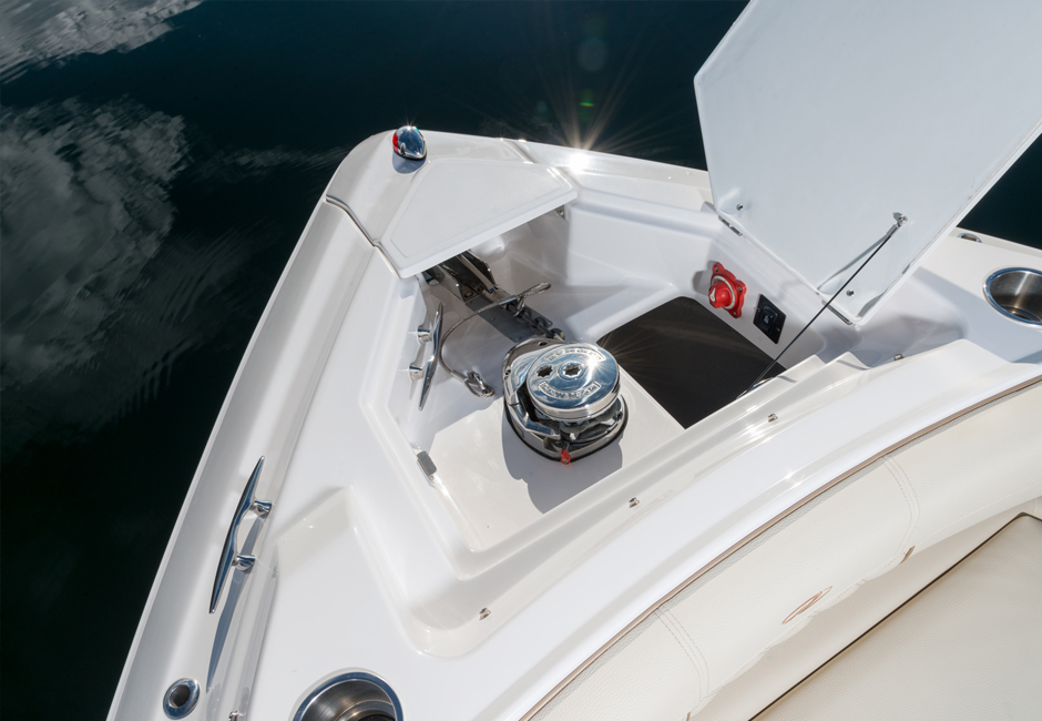 No need to drag the wet anchor through your boat because the 33 SAV has designated storage on the bow.