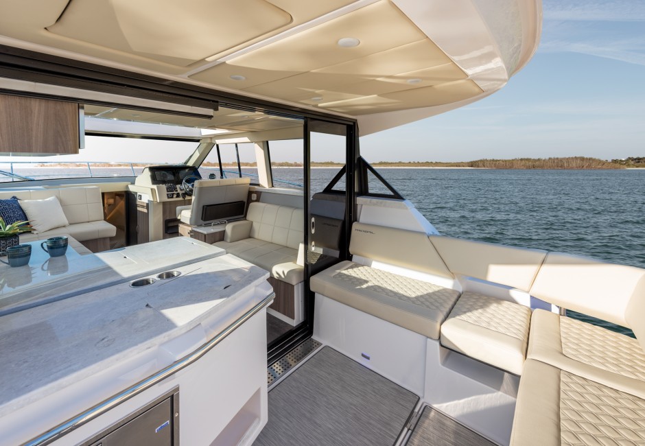 The Regal 38 Grande Coupe sets a new standard in boating. Whether you want to soak up the sun or relax in the shade of the salon, there’s plenty of room to kick back. With a seemingly endless array of features designed for entertainment and relaxation, the 38 Grande Coupe is unmatched in its remarkable style, size and amenities.