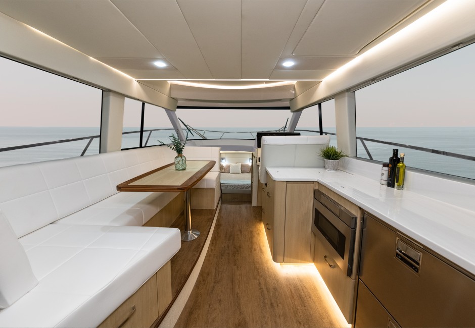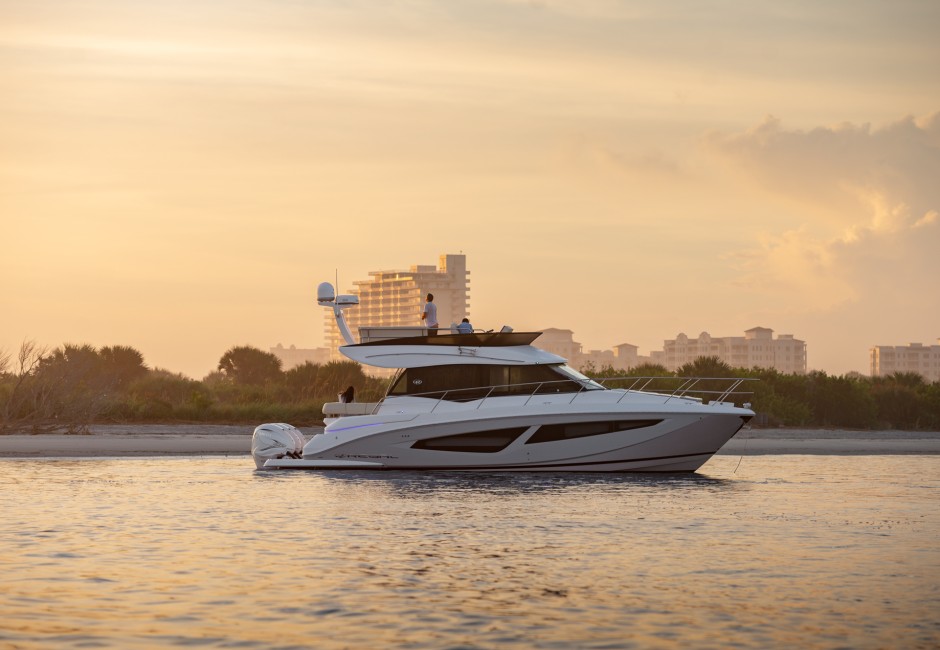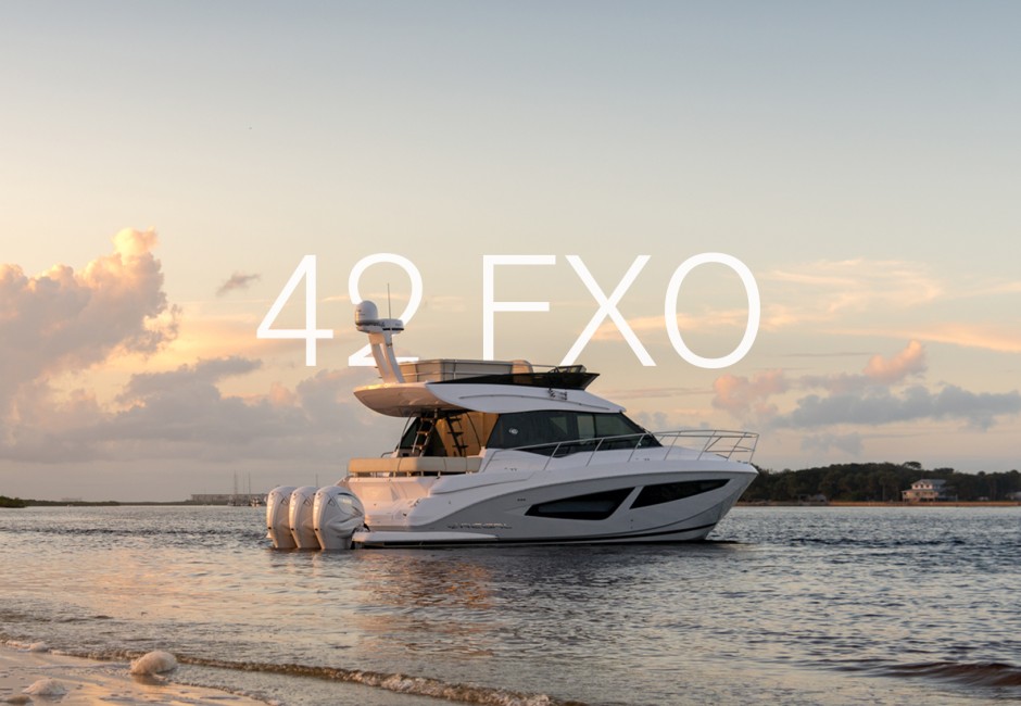 The Regal 42 FXO is the ultimate outboard-powered sport yacht. And with its versatile, pull-up, easy-to-maintain motor, it makes an excellent sandbar-hopper, too. Exceptional performance, outboard versatility and high-end luxury set the stage for endless entertainment and relaxation on the water—regardless of your destination.