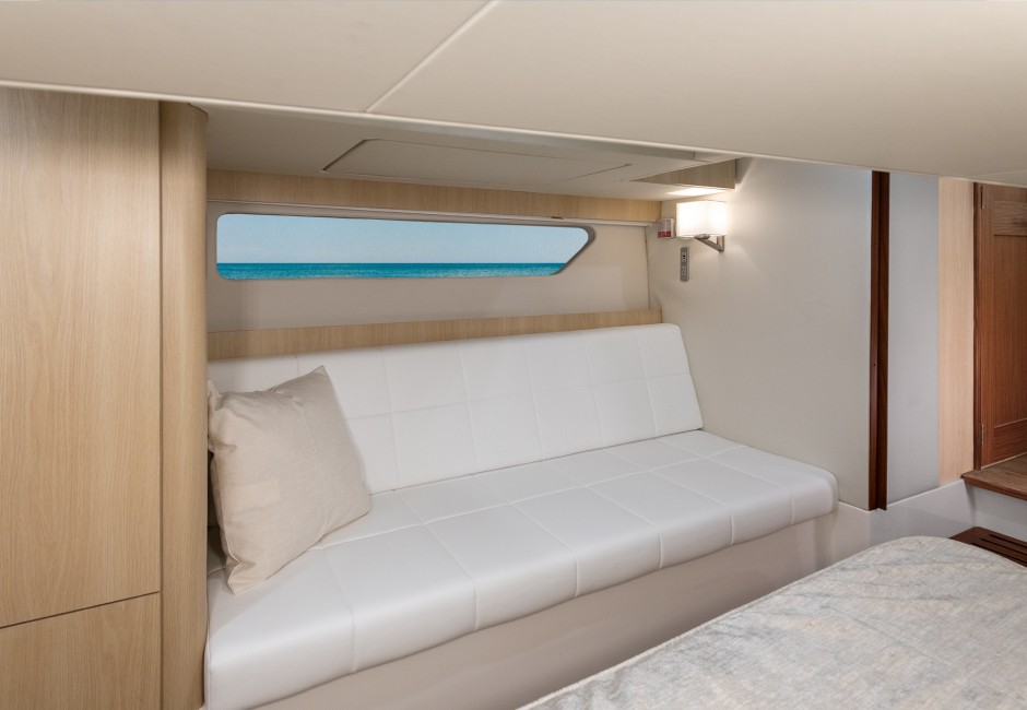 The well-designed head on the 42 FXO is elegant and features a walk-in shower.