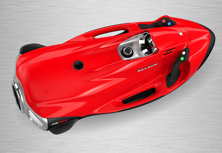 The watercraft has a highly sporty character and stands out in terms of its extraordinary dynamism. Its sporty appearance is emphasised by elements in a matt chrome design. The SEABOB F5 S is at home in the sea and its high degree of manoeuvrability also makes it ideally suited for use in larger pool complexes.