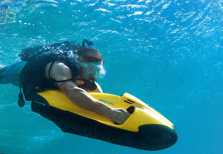 The outstanding properties of the SEABOB F5 in terms of handling make it suitable for use in water anywhere. It is at home in the sea. It demonstrates outstanding performance on the surface of the water and when diving. Owing to its extremely high degree of manoeuvrability, the SEABOB F5 can be enjoyed in both small and large pool complexes