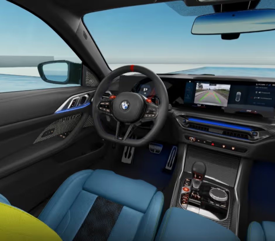 A futuristic and driver-centric dual-screen setup, integrating a 12.3-inch digital instrument cluster and a 14.9-inch infotainment display with the latest BMW iDrive 8 for seamless control and connectivity.