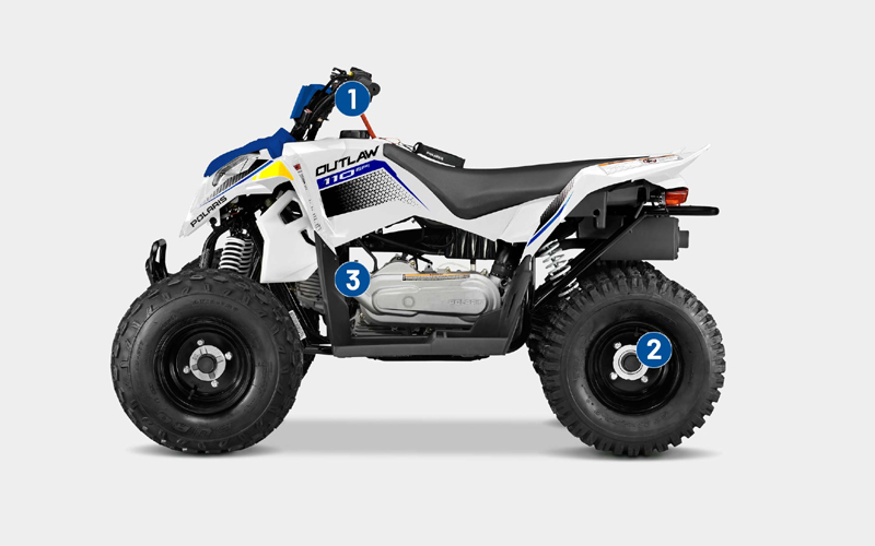 Kids can confidently tackle adventures with a comfortable ride and effortless handling on an Outlaw 110. To get started in the great sport of off-road riding, we've made a machine for kids with the right features. With a 110cc EFI engine and accessories to allow younger riders to grow with their ATV. Made for riders ages 10+.
