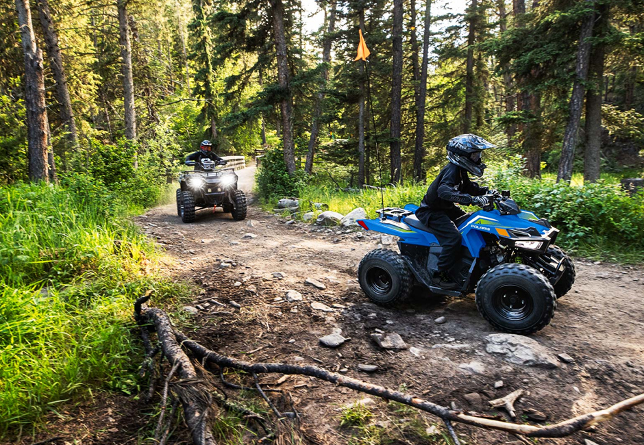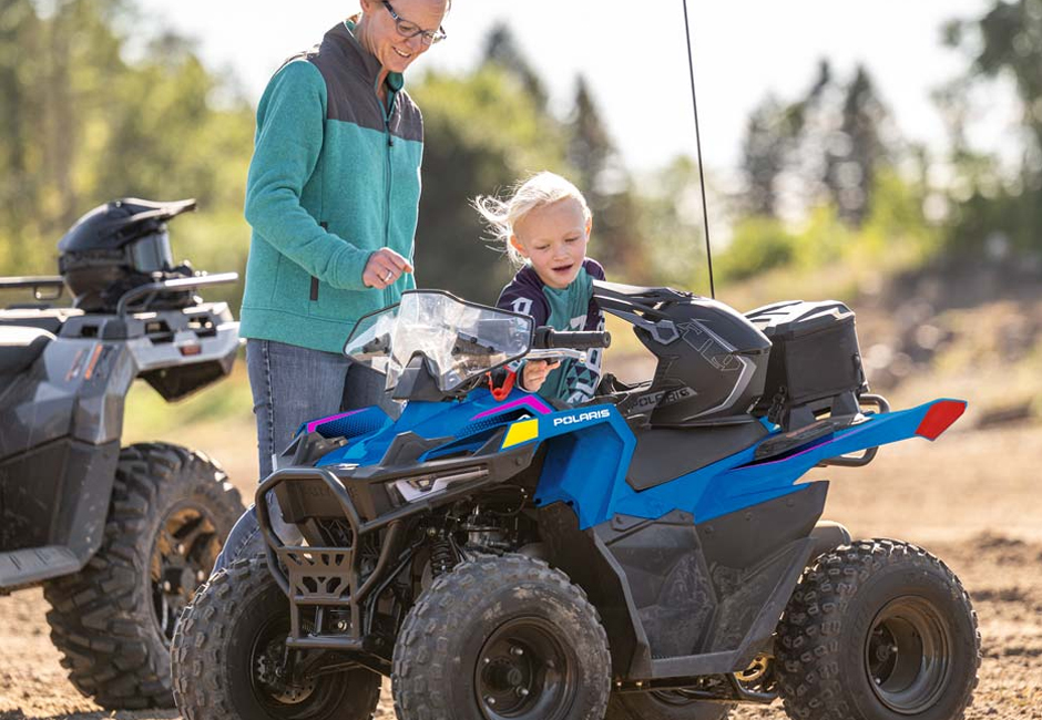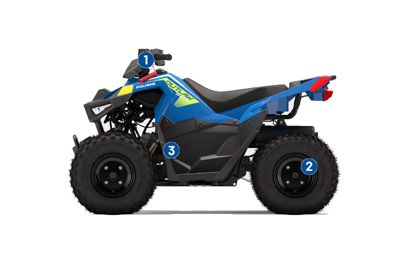 With Outlaw 70, kids can confidently tackle adventures with a comfortable ride and effortless handling. To get started in the great sport of off-road riding, we've made a machine for kids with the right features. With a 70cc EFI engine and accessories to allow younger riders to grow with their ATV. Made for riders ages 6+.