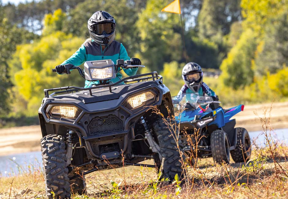 Outlaw 70 EFI is the ideal off-road starter. Built for safety, control and kid-friendly performance. Ages 6+ with adult supervision. Enjoy peace of mind knowing this vehicle comes with key safety features including an adjustable speed limiter, single-lever disc brakes, industry-exclusive safety kit and LED lights.