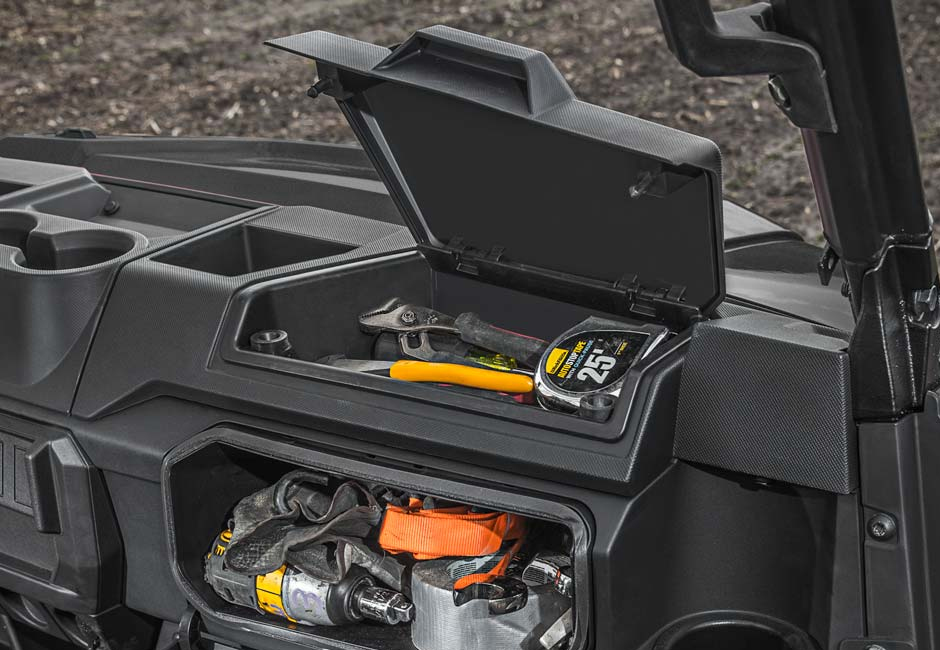 Take advantage of easy-to-access, in-cab and underseat storage for your gear. Place essentials in the dual-integrated glove boxes and keep beverages secure with up to eight oversized cup holders. Plus, charge your phone with the USB charging port.