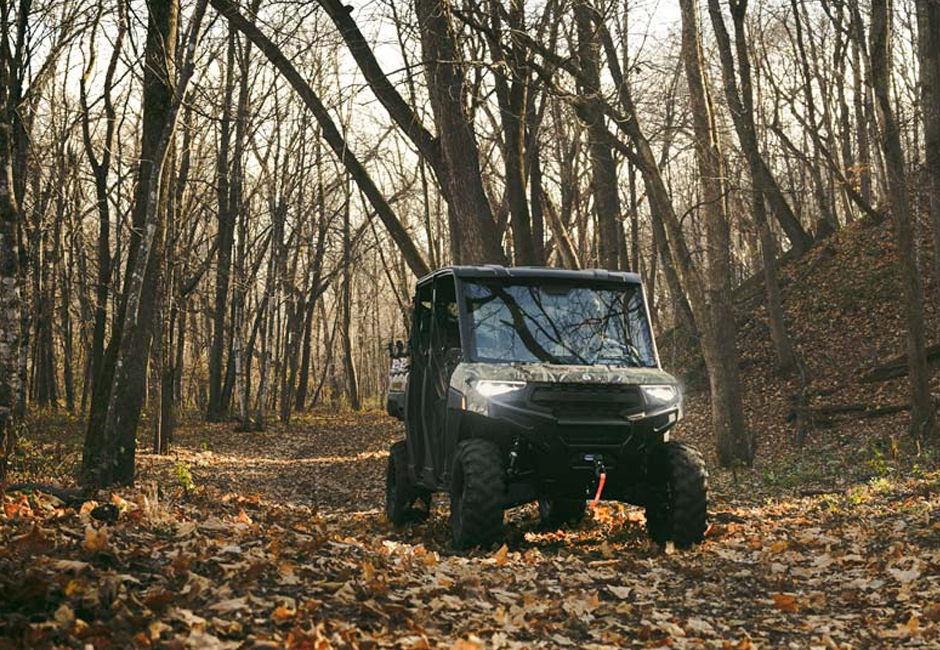 Conquer tough tasks or trails with RANGER XP 1000. It sets the standard for full-size capability, so you can rule the day. RANGER XP 1000 is designed with your comfort in mind. You’ll appreciate the factory-installed roof, easy to operate net doors, and plush, contoured seats. Enjoy RANGER CREW XP 1000 with friends in our comfortable 6-seater.