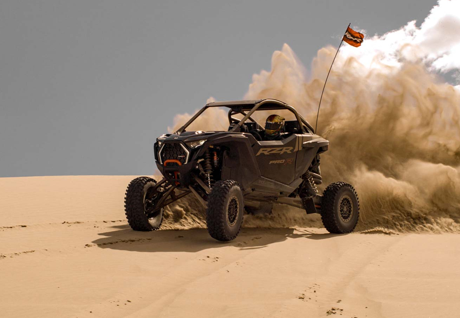 Out-thrill them all with an off-road beast designed to dominate. RZR Pro R delivers heart-pounding performance to defy deserts, conquer dunes and break records off road. Never place second again. With RZR Pro R, you always win.