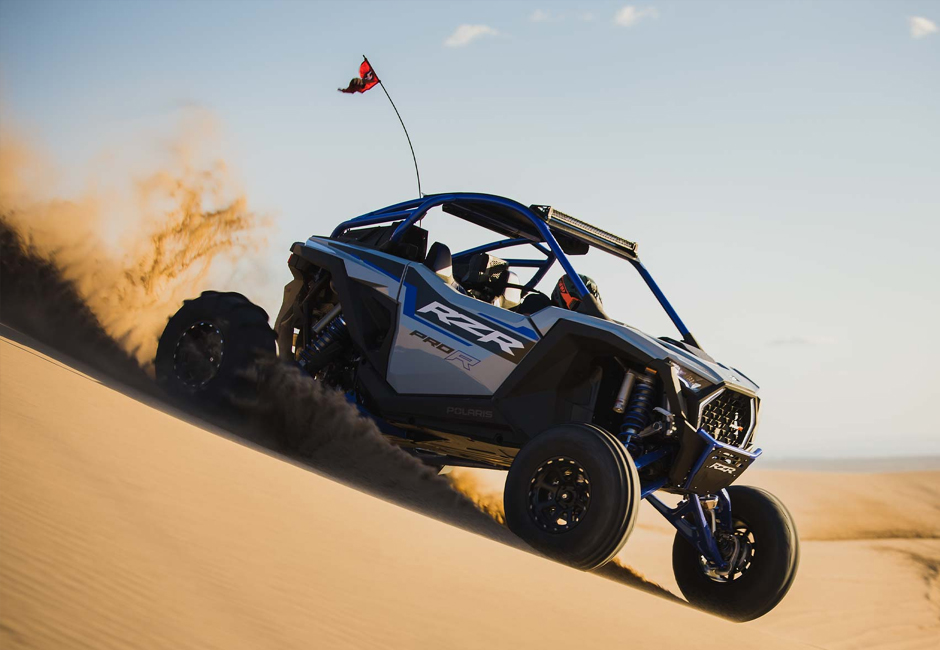 Show up and show out with the bold new design of RZR Pro R—delivering more and style and performance to win it all. Unleash a force of nature with RZR Pro R, our most powerful RZR, delivering race-proven performance.
