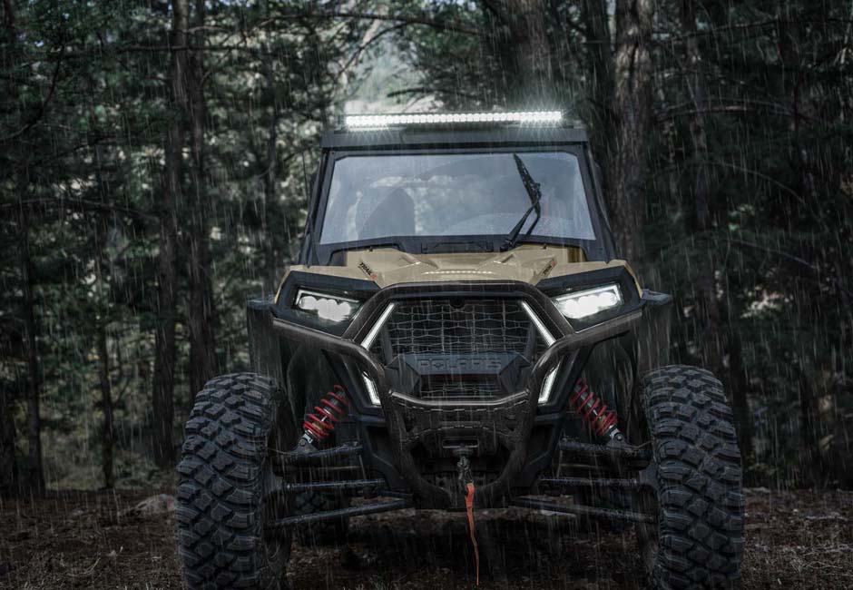 Ride challenging terrain with added security and protection from the elements, thanks to sturdy full doors and a wrap-around roll cage for rear coverage.