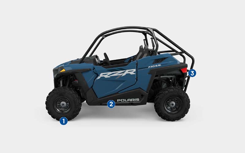 Ride tight trails with the nimble agility, instant acceleration, and quick handling of RZR Trail. Make the most of your time outside. RZR Trail uses advanced technology to elevate your ride experience with an industry-leading 7" Display, powered by RIDE COMMAND, and factory-installed premium audio.
