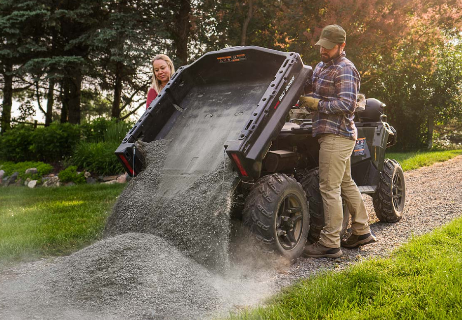 Move larger loads more efficiently and confidently, with a class-leading 800-lb. dump box featuring factory-integrated D-rings with multiple tie-down points to secure cargo.